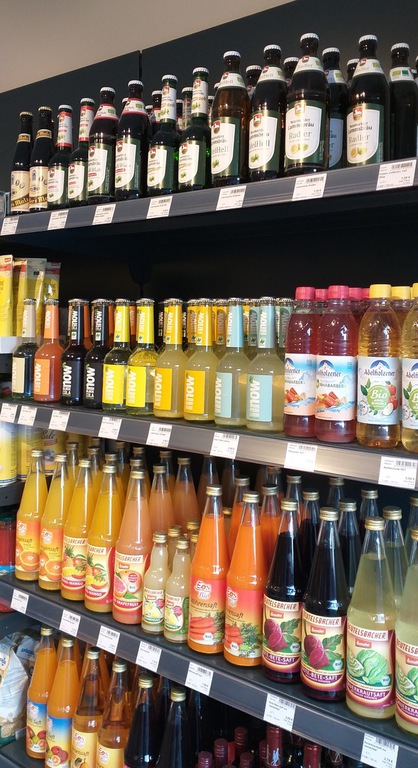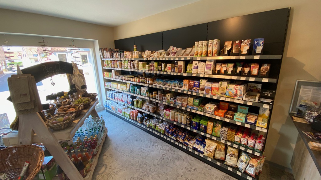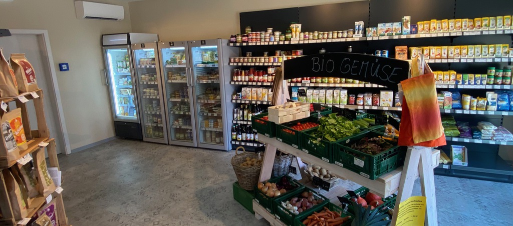 Obst und Gemüse, Milch, Sauermilchprodukte, Quark, Joghurt, Sahne, Butter, Margarine, Käse, Frischkäse, Eier, Tofu Produkte, Wurst, Fisch, Antipasti, Getreide-Produkte, Flocken, Hülsenfrüchte, Ölsaaten, Nusskerne, Nudeln, Trockenfrüchte, Müsli, Aufstriche, Honig, Gewürze, Essig, Öle, Suppen, Soßen, Würzmittel, Frucht- Knusperriegel, Süßigkeiten, Schokolade, Waffeln, Kekse, Knabbergebäck, Süßmittel, Pudding. Back- und Geliermittel, Tees, Kräutermischungen, Kaffee, Kakao, Wasser, Fruchtsäfte, Bier, Wein